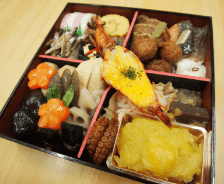 田作・黒豆・紅白蒲鉾・膾・菊花蕪・栗きんとん・伊達巻・栗蒸羊羹